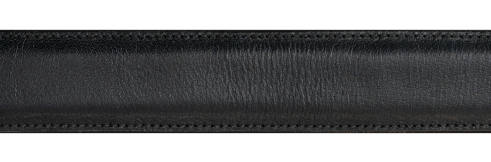 This black calfskin belt is available in several widths and lengths to ensure you have the best fit possible.